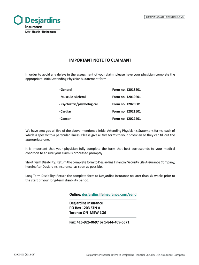 Salary change return to work termination of employment disability company address change new plan administrator etc. Phone number to speak with a Desjardins AgentThis link will launch your default phone software. Choose the type of insurance enter your postal code and follow the steps.